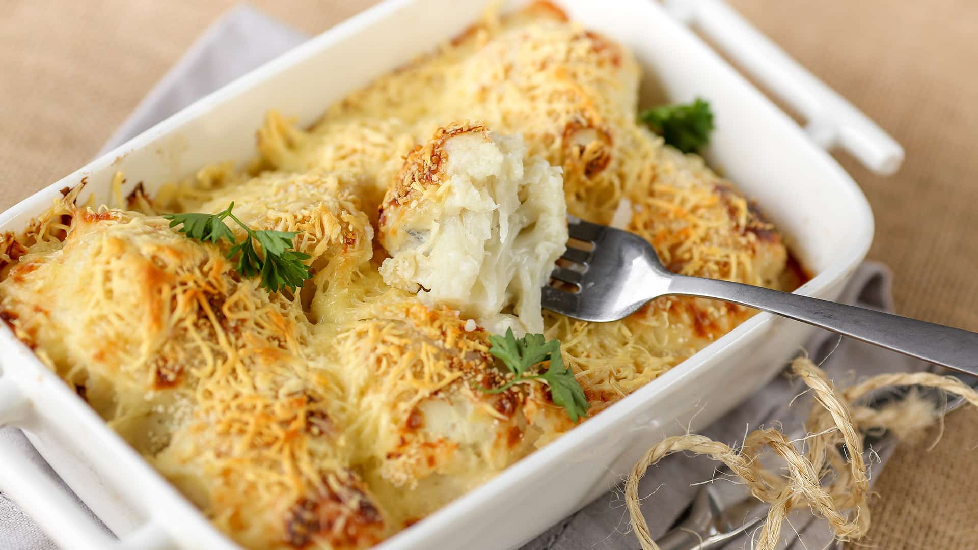 3. Dans un plat à gratin, disposez les bouquets précuits et versez la préparation, mélangez pour bien incorporer tous le chou-fleur ;