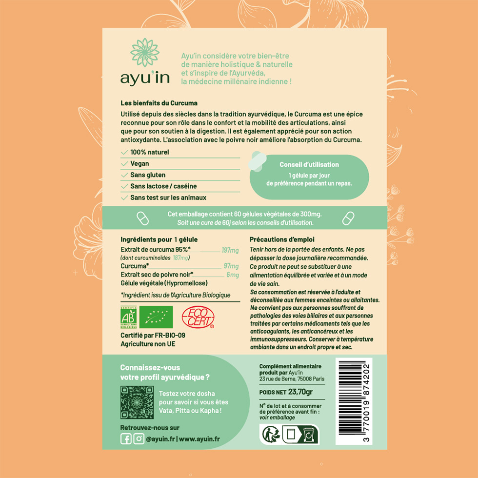 Ayu'in / Boutique / Compléments alimentaires Ayurvédiques / Curcuma Bio Concentré – Confort Articulaire & Digestion