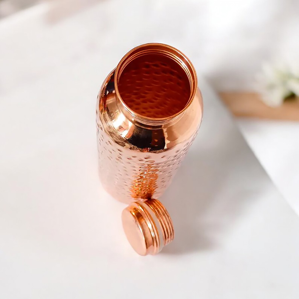 • Remplissez votre bouteille en cuivre d’eau à température ambiante et laissez-la infuser pendant 8 à 12 heures. Le meilleur moment pour le faire est de remplir votre gourde avant de vous coucher et de boire l’eau le matin à jeun,