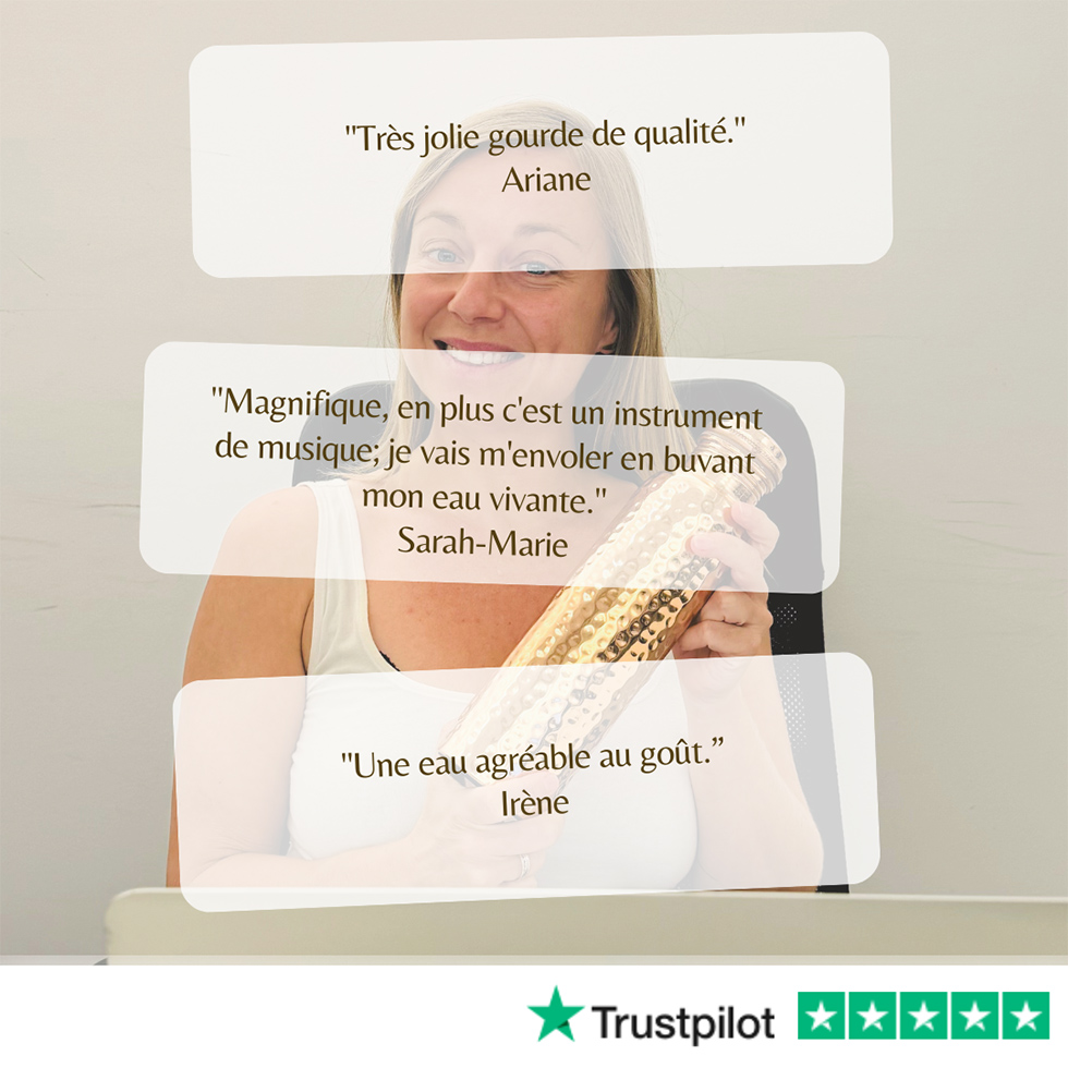 Boire de l’eau cuivrée, venant de la pratique ayurvédique Tamra Jal (« tamra » signifiant cuivre et « jal » eau), stockée pendant au moins 8h dans la gourde en cuivre, vous offre des bienfaits uniques :