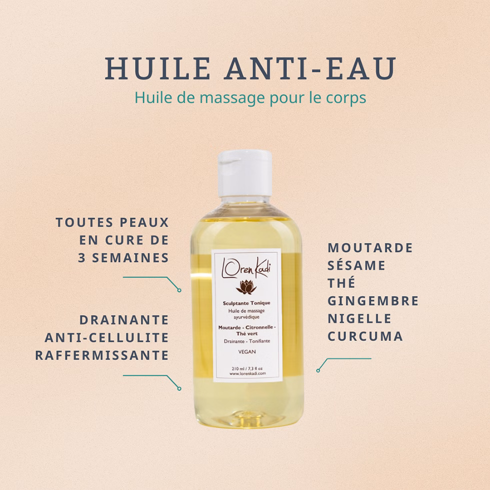 Découvrir nos produitsAyu'in / Boutique / Huiles Ayurvédiques / Huile Anti-Eau drainante et raffermissante