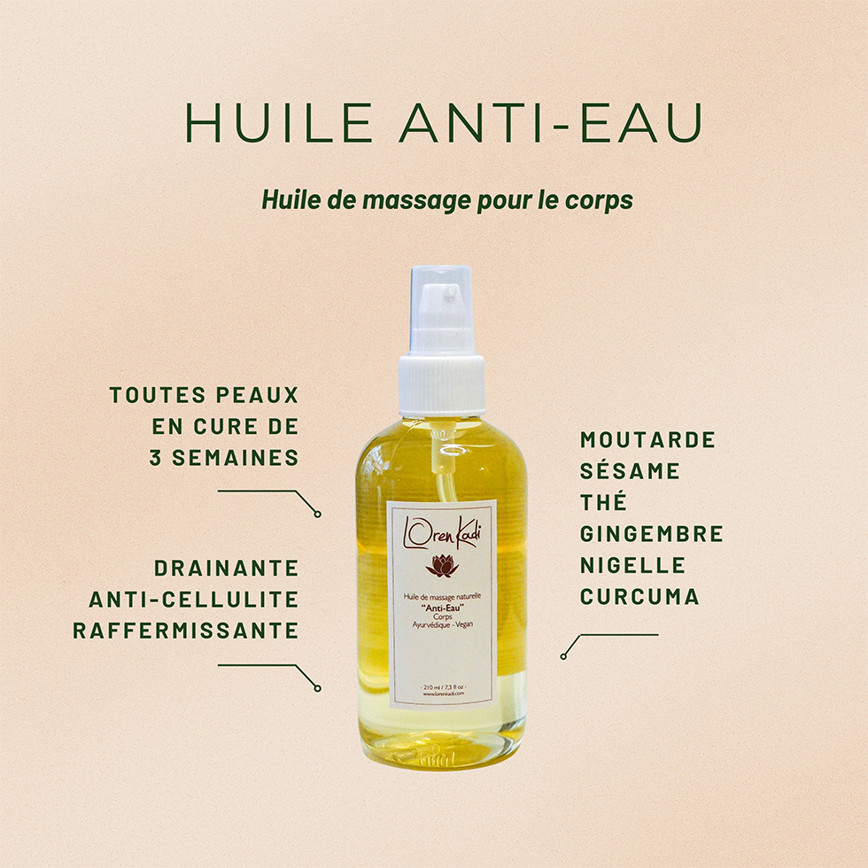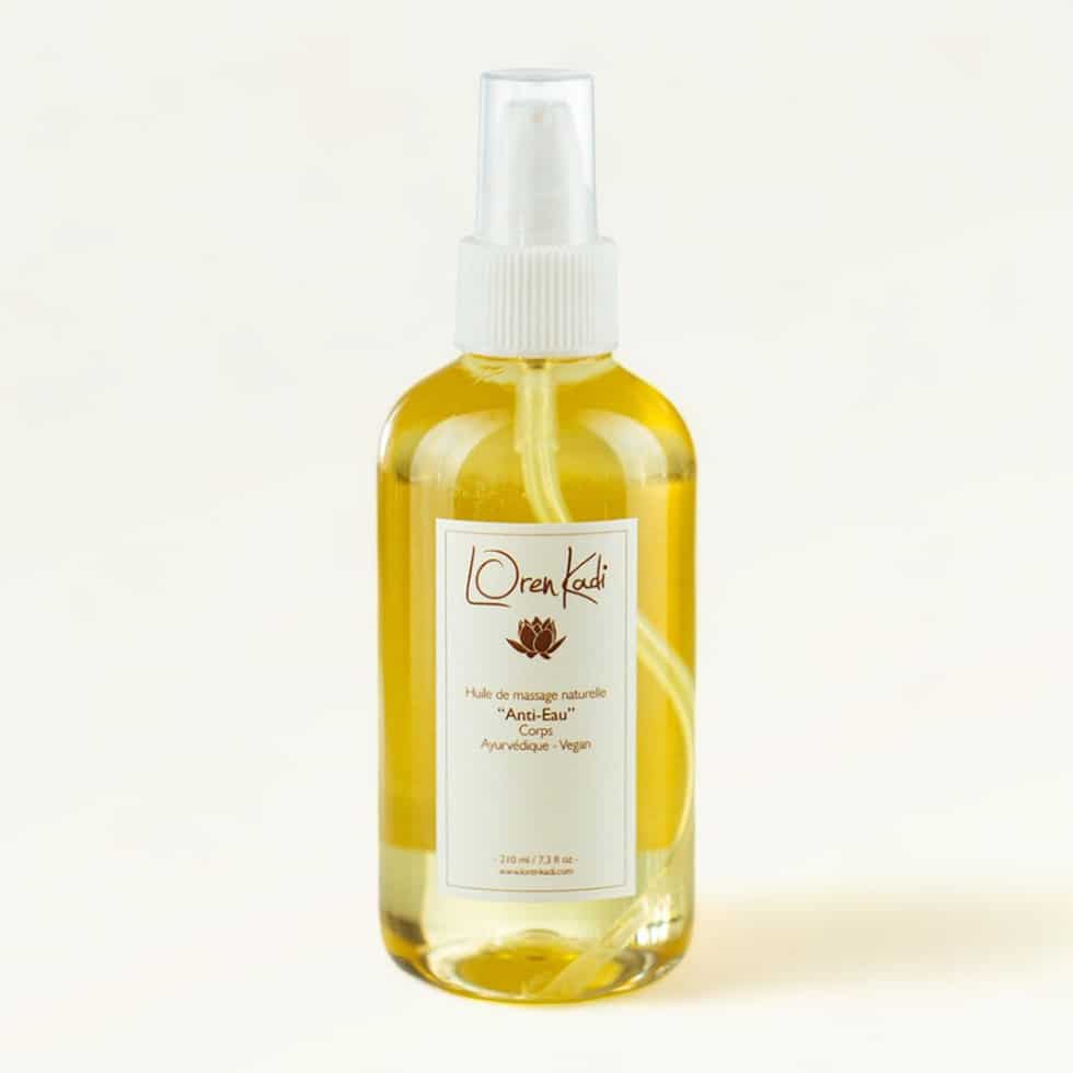 Huile ayurvédique naturelle drainante et raffermissante pour le corps.
